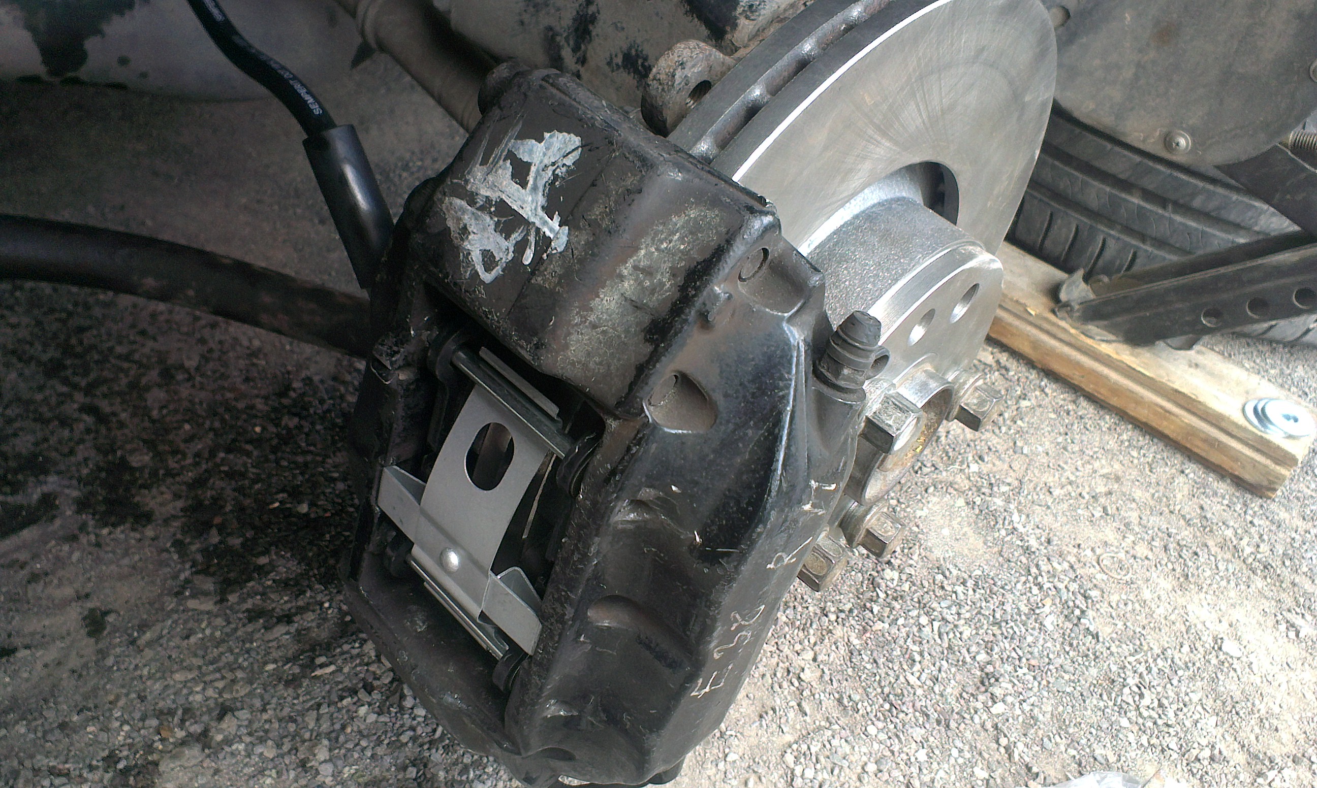 При переворачивании трубку, соединяющую половинки можно переставить, чтобы прокачные штуцера смотрели вверх. Направленный отлив под тормошланг немного портит феншуй. Можно изготовить медный изгиб, смотрящий вверх, с кронштейном. На бочке 2 гибких шланга, и вообще можно протянуть медную трубку полностью до кронштейна на стойке, т.к. была плавающая скоба, стал неподвижный суппорт.