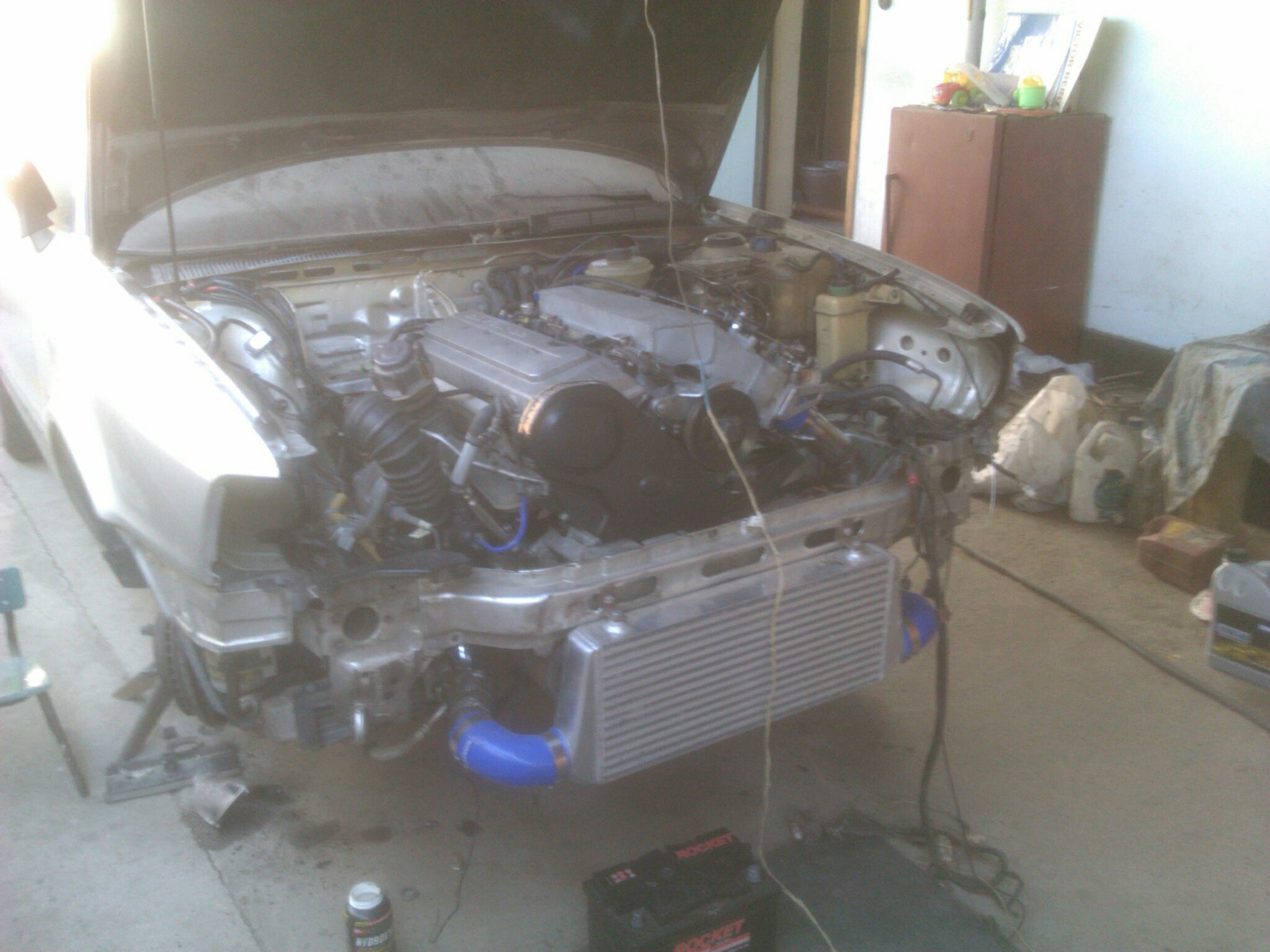 коллектор на ж/б блок похож))) но зато дросель теперь стоит так, что и батарею оставил на месте и трубы под кулер легли хорошо! кулер впечатляет)))
