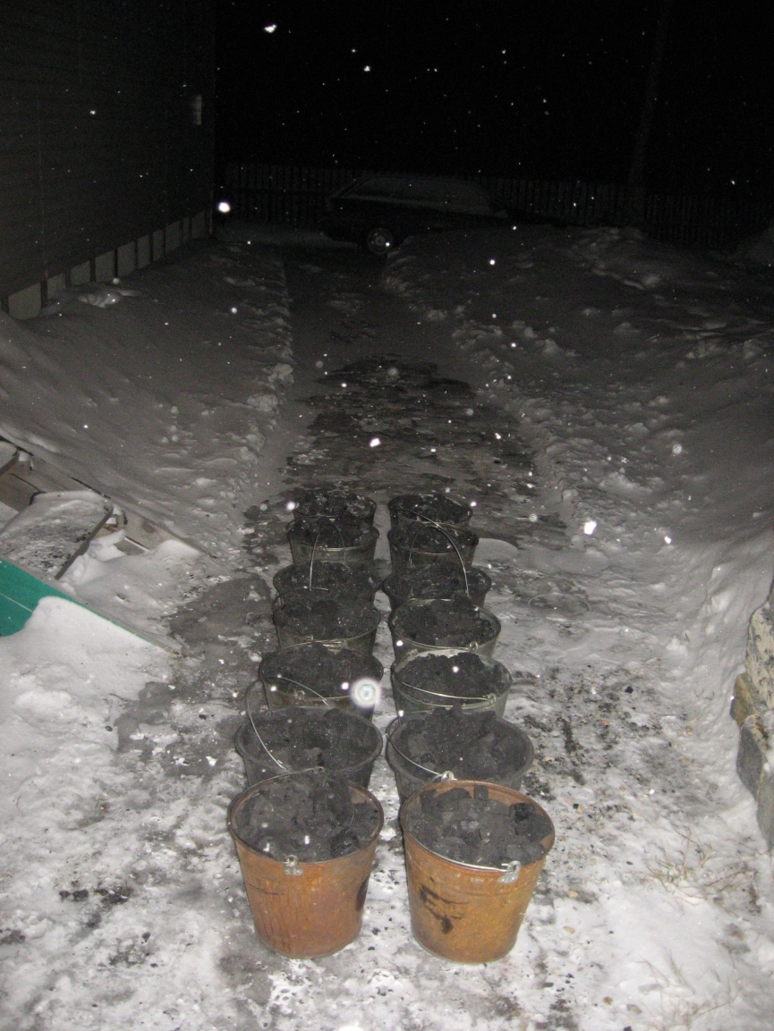 Принес угля в котельную на двое суток...эска скучает во дворе...