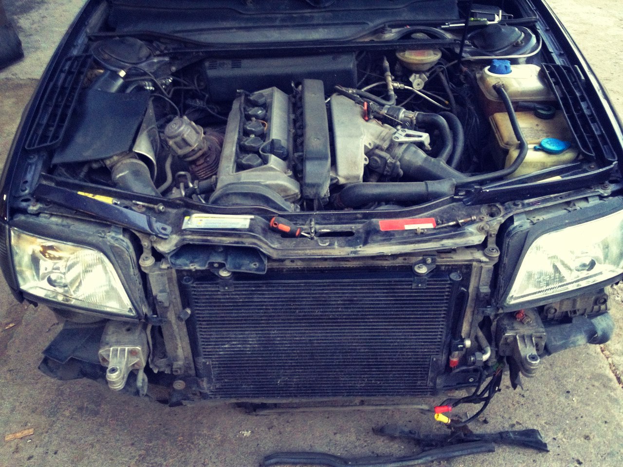 Поставил щитки между радиатором и фарами, поставил новые кронштейны ресниц на фары.