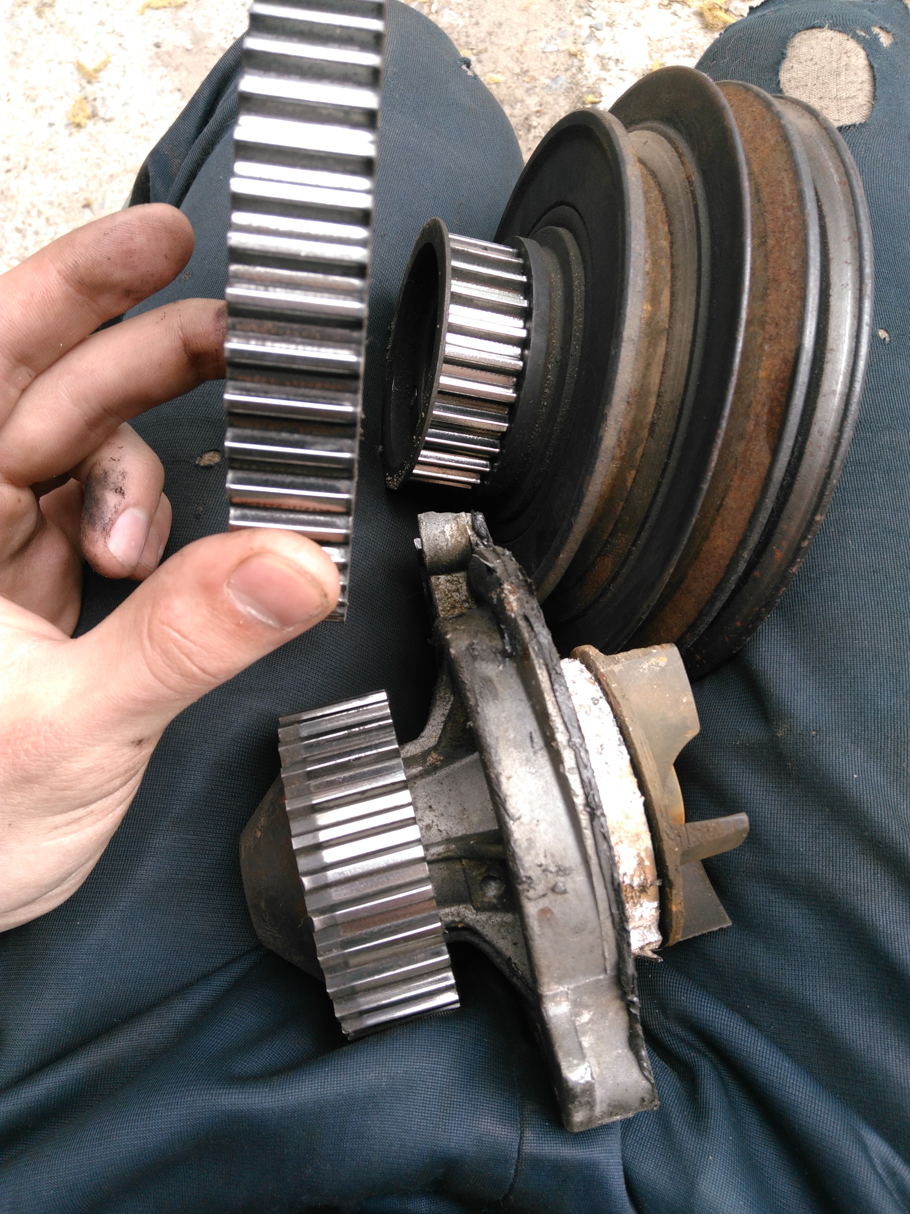 Всем привет, такая проблема. Полезли ставить ремень ГРМ, а он не подходит по форме зуба и по частоте. Имеем плоские зубья на шкиве колена, помпе и зубчаом клесе распредвала. Есть подозрение что на моем 1B моторе стоят они от 3B, т.к. на старом моторе тоже 1B стоят именно под купленный ремень и помпа и шкив и зубч. колесо. Помпа мёртвая. Вопрос в чем собственно: можно ли купить ремень 3B и поставить на моей собранной схеме или надо покупать помпу и перебирать со старого мотора?