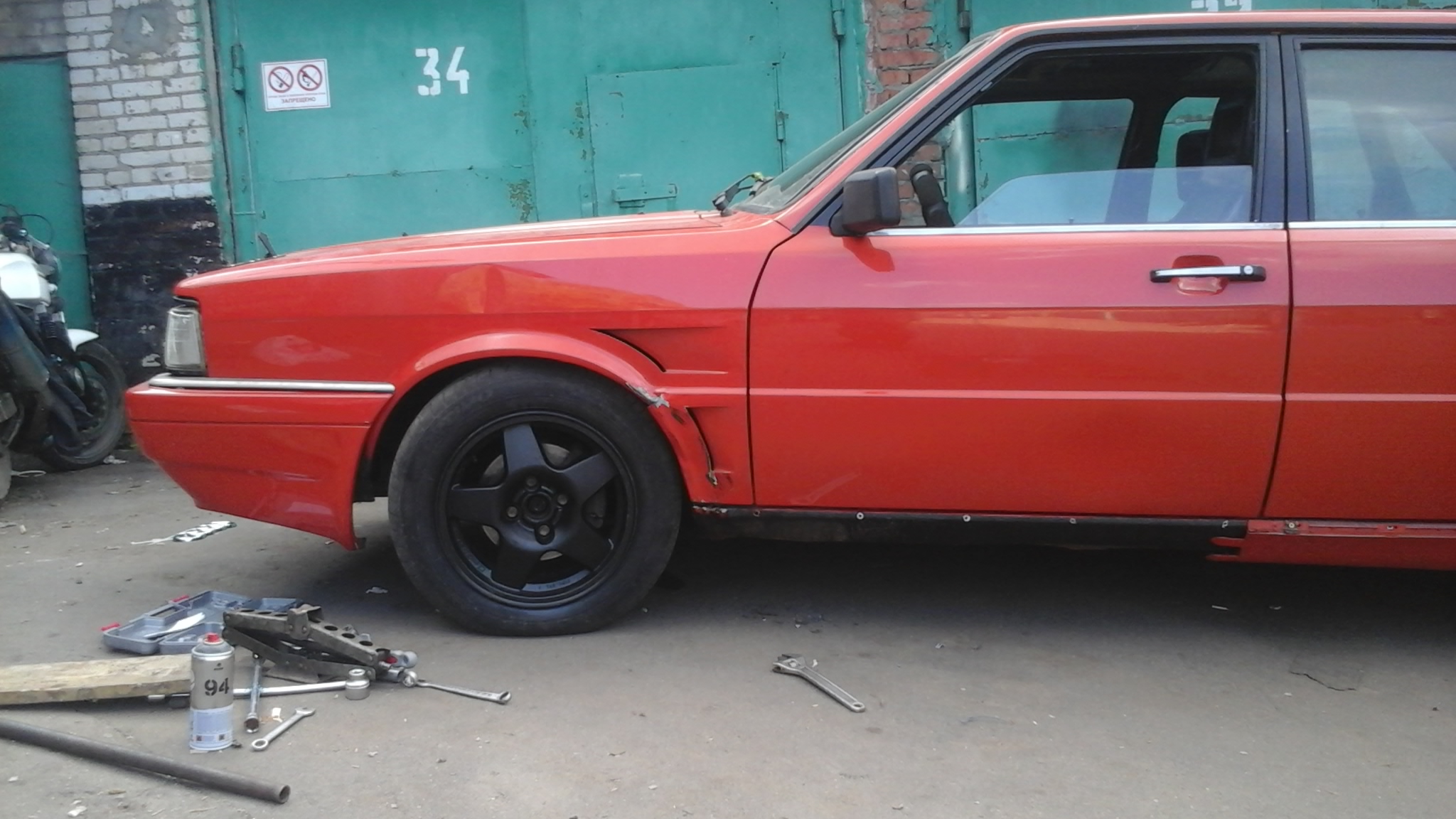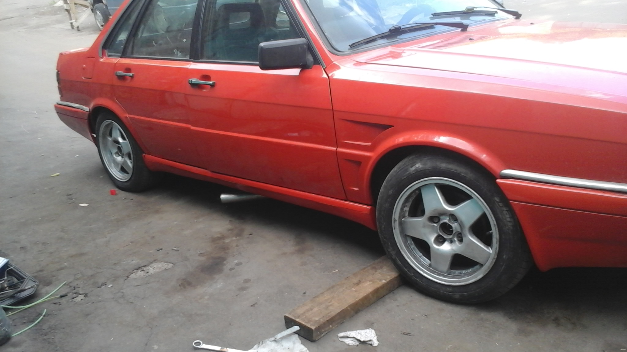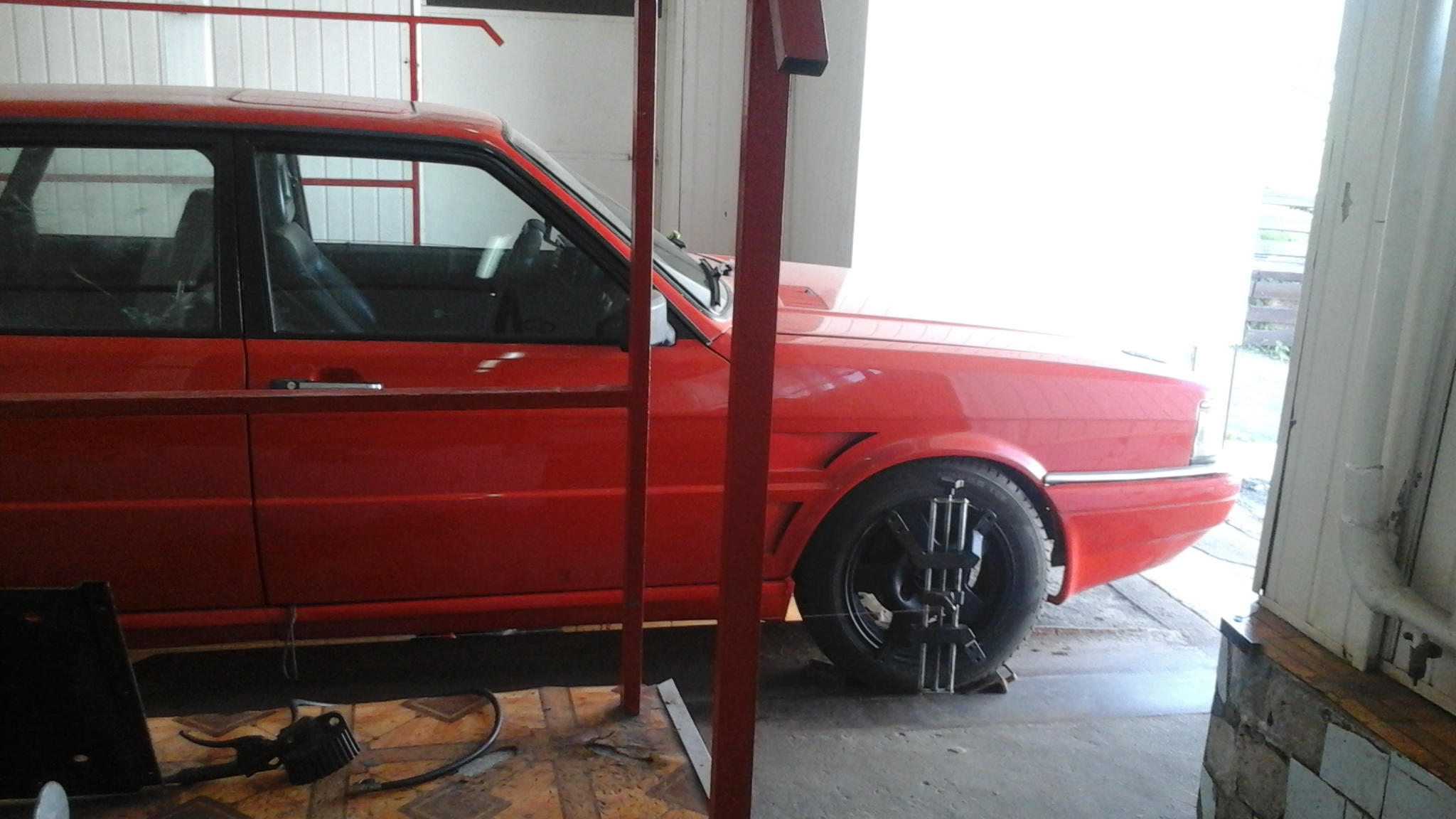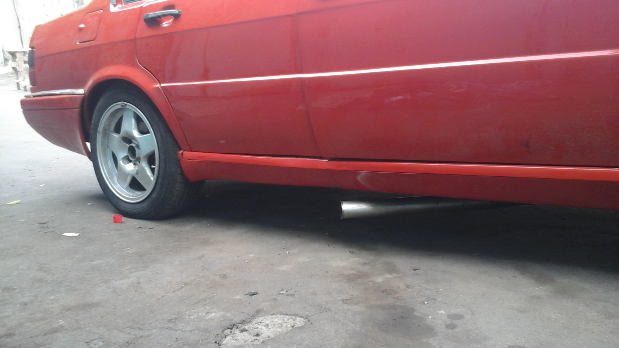 все с шаровой и подвеской разобрался , сделал пропил болгарочкой поровнее и все зажалось как надо , подкрасил колесья ( на фотках не целиком ) , поставил кусок выхлопа