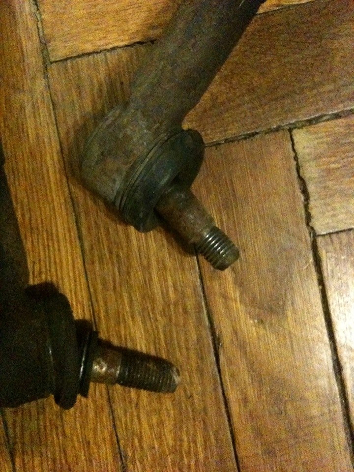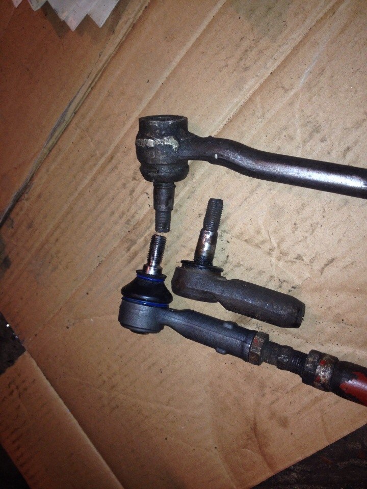 Но осталась другая проблемка. В стойке дырка под конус пальца наконечника 14.7 мм, в то время как у Ауди 12.5(вроде)...То есть не айс. Есть идея сделать разборным наконечник и запилить туда палец который нужно, или же заказал на примерку один наконечник от VW T4. Он вроде на сантиметр короче, но конус и резьба по-моему то что мне нужно. Посмотрим завтра.