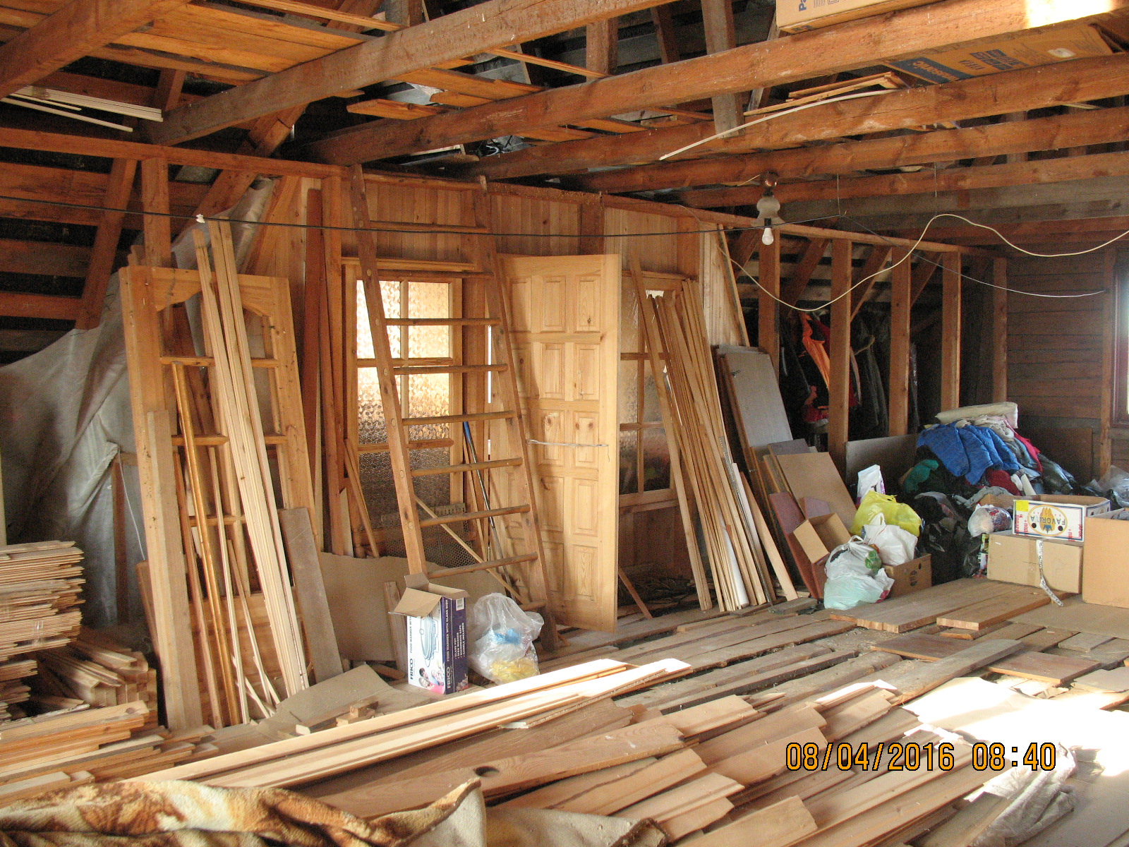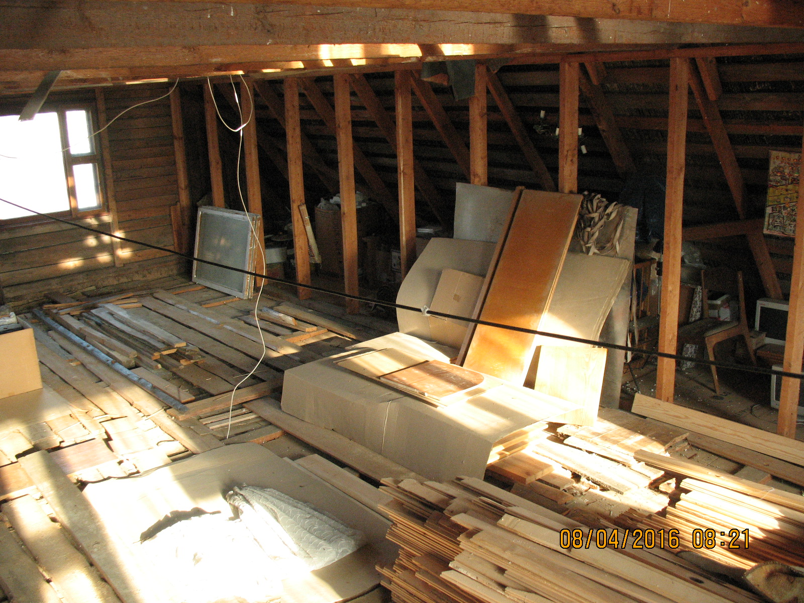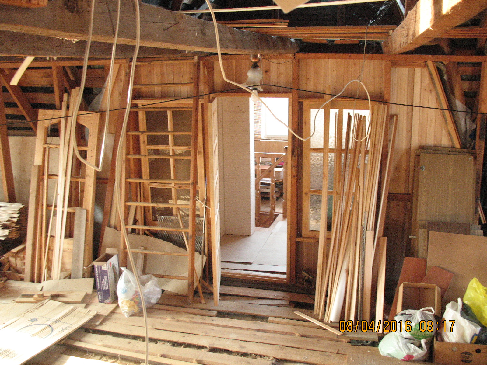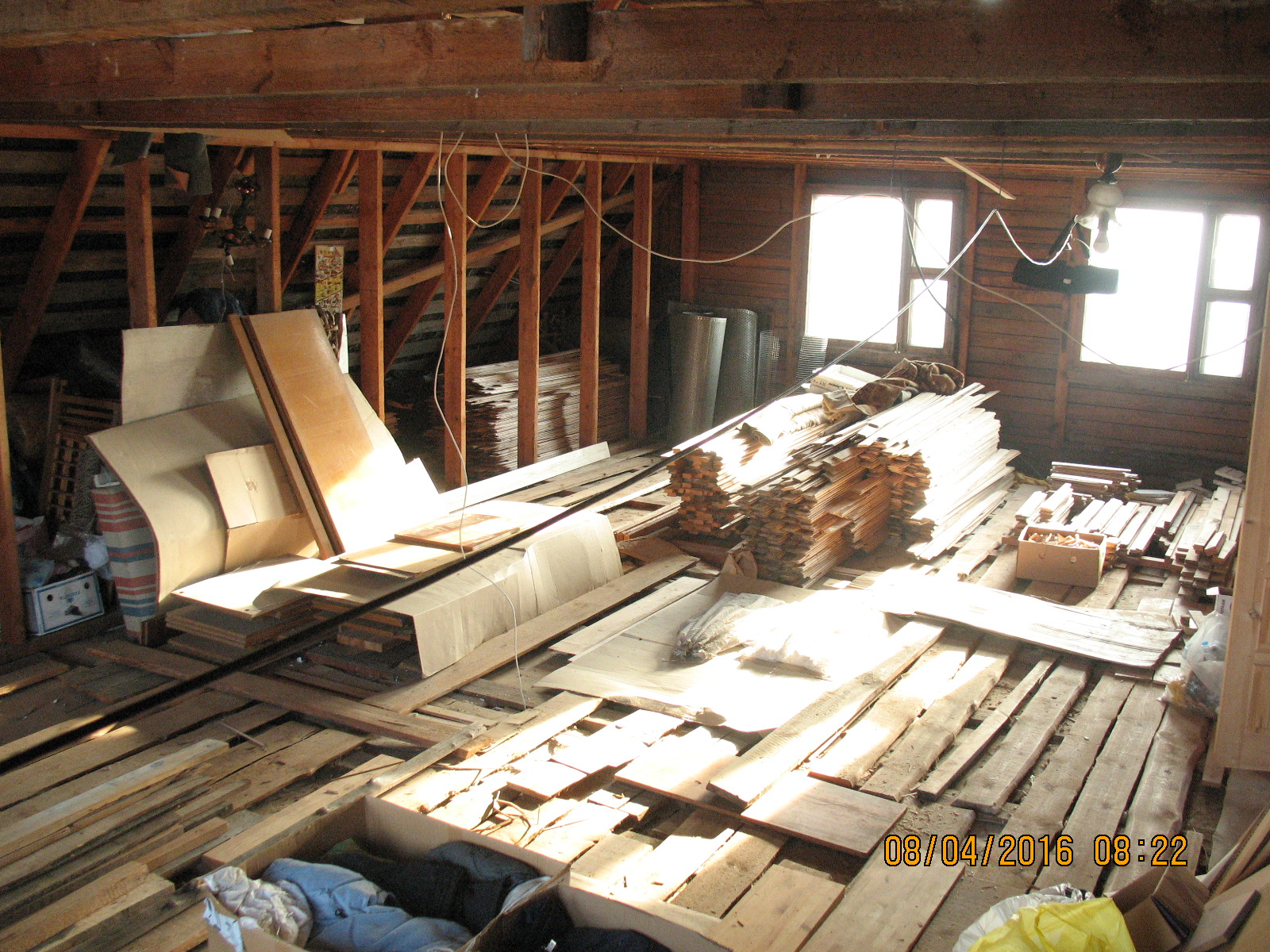 ближайшее по плану: уборка всей площади, точки вывода коммуникации с 1-го этажа, усиление верхний поперечек стропильника (есть ещё хоть и не большой третий этаж ), утепление крыши по мурлату, далее каркас обрешётки, стены комбинированные гипсокартон/вагонка, прокладка кабелей, половая доска, фронтонные стенки (восток/запад)