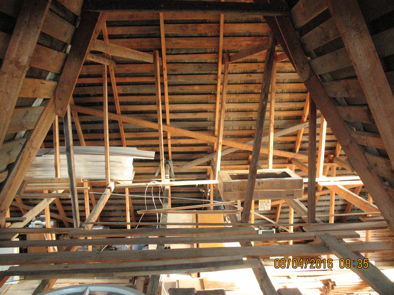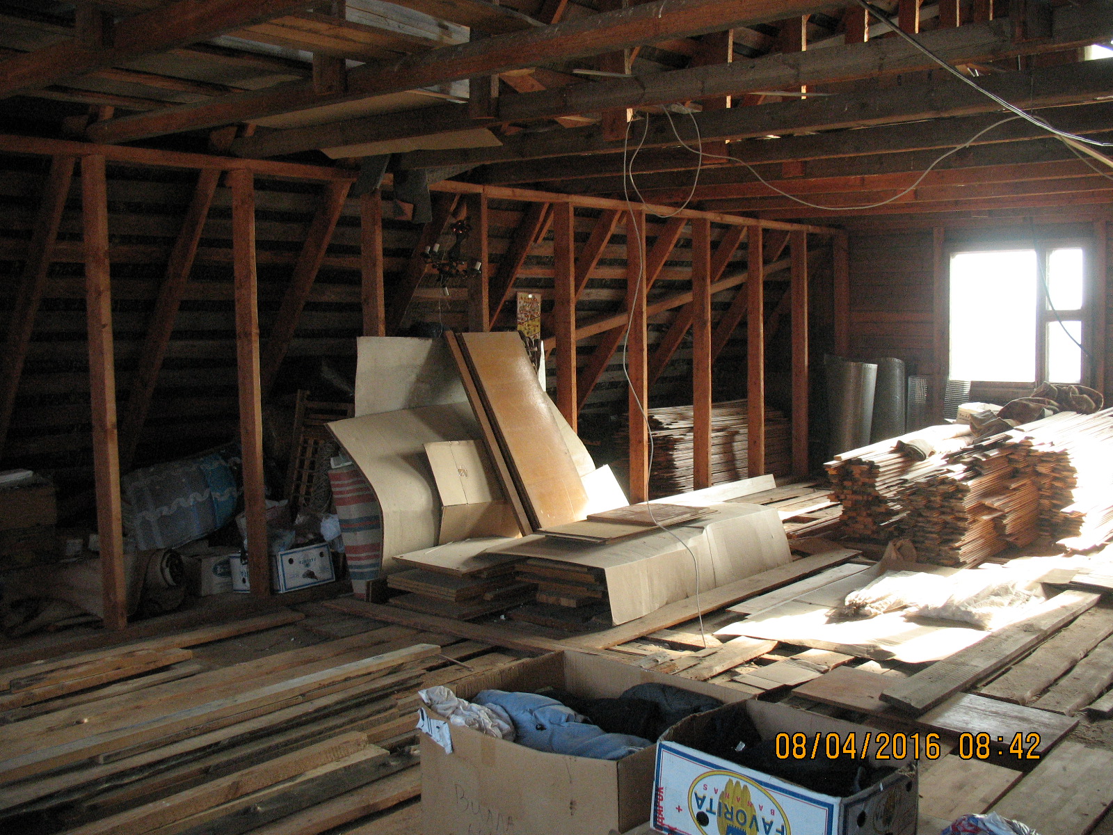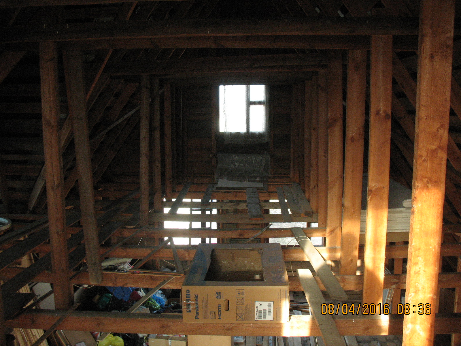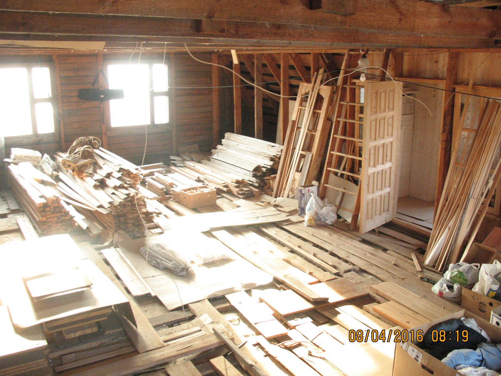 ближайшее по плану: уборка всей площади, точки вывода коммуникации с 1-го этажа, усиление верхний поперечек стропильника (есть ещё хоть и не большой третий этаж ), утепление крыши по мурлату, далее каркас обрешётки, стены комбинированные гипсокартон/вагонка, прокладка кабелей, половая доска, фронтонные стенки (восток/запад)
