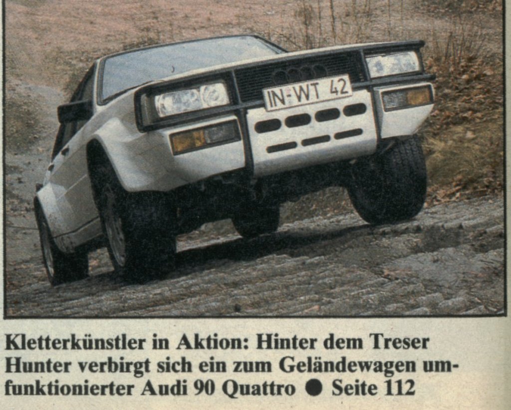 Данный автомобиль построен на базе Audi 90 quattro (B3). Об обычной 90-й модели Hunter отличают усиленная подвеска, большой дорожный просвет (около 18 см.), стильный обвес, "кенгурятник", железные трубы на заднем бампере и боковинах кузова, диски с оригинальным дизайном (размерность 240/45). Так же изменениям подверглось сердце машины - 245 л.с. Максимальная скорость составляет 230 км/ч. Главными покупателями данной модели были арабские шейхи и прочие богатые люди с Ближнего Востока.