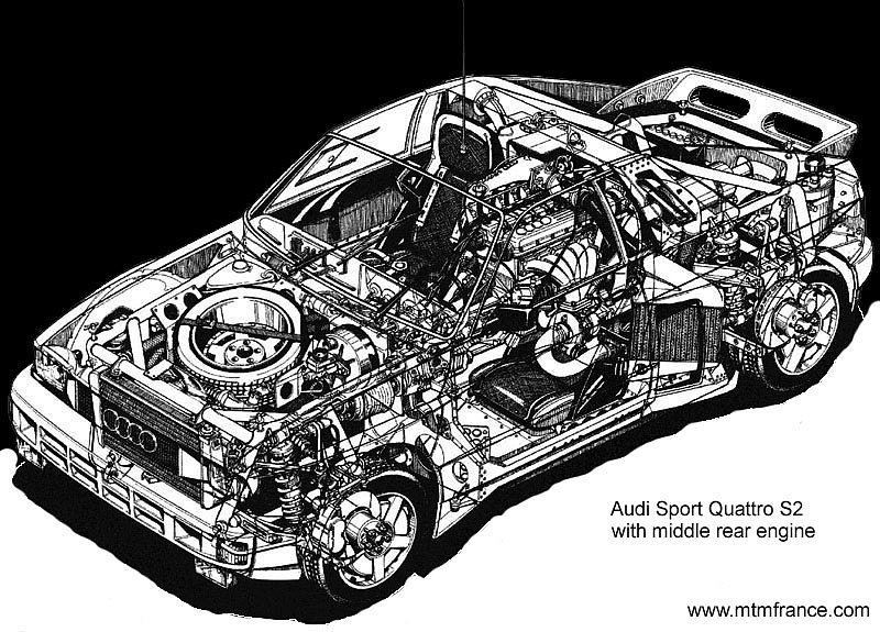 На момент выхода в группе б кватра была передовой машиной, и могла выигрывать и с такой компоновкой, через пару лет, когда пежо и лянча сделали более продвинутые для спорта машины она была уже не конкурентоспособной. т.к. базировалась на стандартном кузове сразу ауди кватро, потом спорт кватро, а у конкурентов был по сути трубчатый каркас накрытый обшивкой повторяющий кузов серийной машины.Со стороны ауди это как бы была рекламой полного привода в серийных машинах. Когда они поняли, что S1 больше не может конкурировать в управляемости с соперниками началась разработка заднемоторной