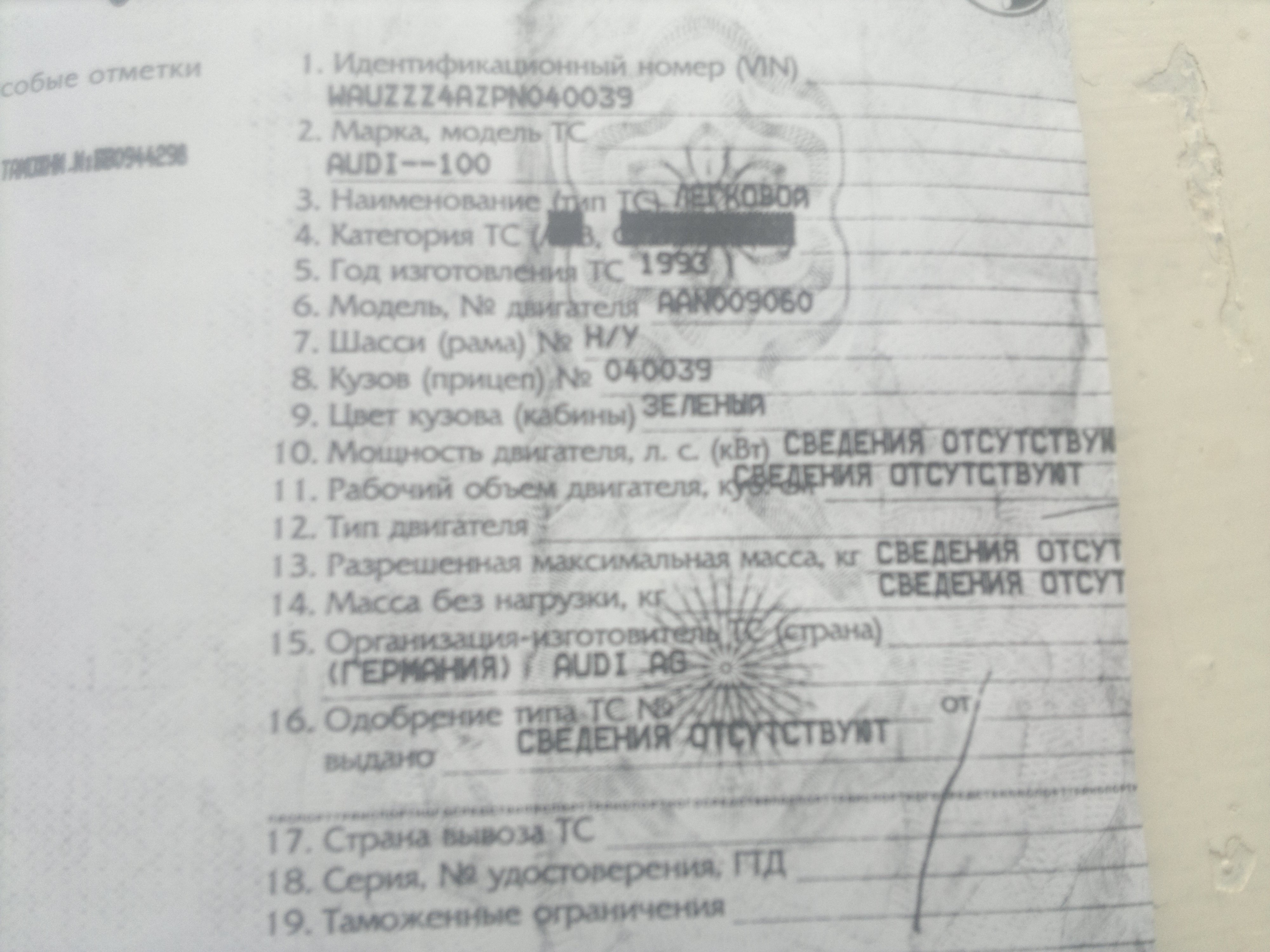 Самое интересное! В момент пересечения границы, в ПТСе не указали лошадиные силы вообще! )))
