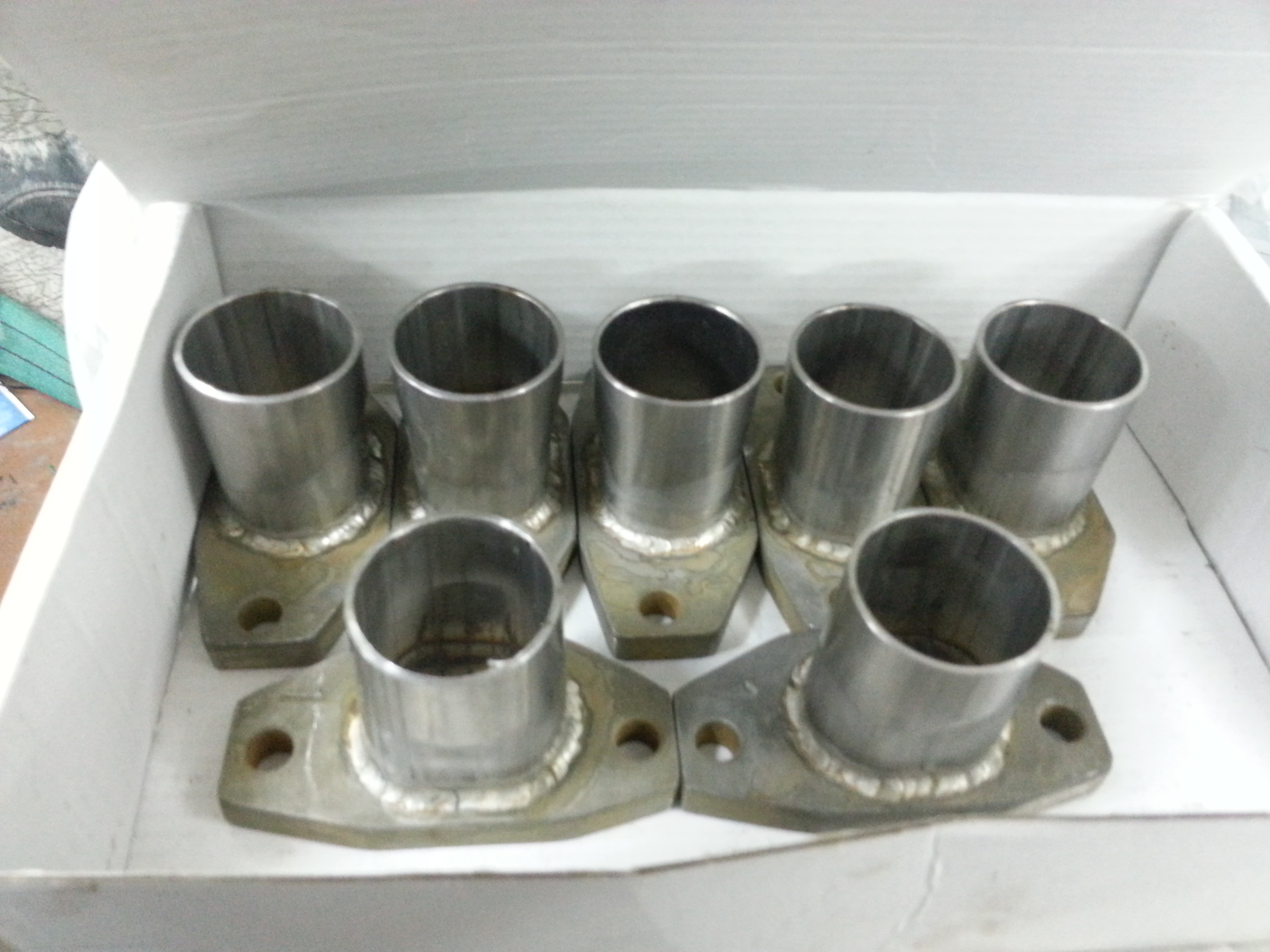 Материал фланцев сталь 40, материал патрубков нержавейка ansi 318, сварка tig в среде аргона. Плоскости отшлифованы на плоскошлифовальном. Цена 2000р за все, в комплекте 7 штук (2 прозапас для кривых ручек