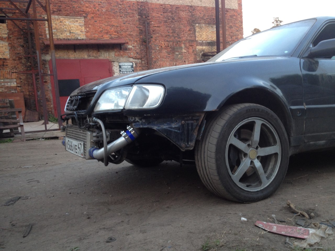 на данный момент сделано(двоеточие) земенена подвеска, тормозная система, салон не дособран, строкер с тазопоршнями, шатунами от дизеля, сцепой ве8 бортовым маховиком от KG.. турба Schwitzer S2B от камаза с горячкой 0.6 , выхлоп полностью 76мм, всё это управляется естественно январём, тфси катушками и прочим)) наддув 0.6-1.8кг в зависимости от погоды на луне) сейчас таки настроил в пределах 1 кг, раздув с 3000, всё бы ничего, работает устраивает итд, даже вроде едет, после 1 кг на второй начинается букс потом зацепляется.. я непонимаю едет она или нет тк в своё время переездил на мотоцикле, пассажиры молчат когда раздувается.. наверно мощность где то более 300лс, и так о чем это я, вобщем всё бы хорошо но нет давления масла хотя маслонасос и всё остальное кроме головы более чем в отличном состоянии, всё что было возможно купить новое в моторе, как только начинаю нажимать давление 1кг на разгоне, на холостых 1.1 и 2кг на 2000 на месте если стоять, на торможении давления нет и вовсе.., тормоза не тормозят хотя они от таурега или от каена так моднее звучит, 4 поршня, поршни выточили из титана какого то, задние 310 с сток суппортами , перед 323 цимерман, три торможения с 170-200 и они становяться как на восьмерке если один раз затормозить с невентилируемыми 13 с переди)) и диски окрашиваются в синий цвет, напротив если стартовать с лаунча не дай бог это вообще сделать с наддува больше чем 0.3.. масло выливается через вентиляцию и давления в этот момент нет! при этом сцепа от ве8 не держит, а так же я изрезал всю штатную косу, нормальной схемы я не нашел но срастил всё это с январём, электропакет не работает и частично управляется от косы января потомучто что то уничтожает заряд акума за несколько часов, кондишн я удалил тк все от него болеют, по заверениям всех кто ездит и места не было под январь а протягивать штатно было лень и не удобно если что всё это демонтировать.. ну ещё я установил маслорадиатор удалив маслотермостат совсем и преварив то в чем он стоит, никаких ан трубок и фитингов я не использовал тк это шляпа полная на мой взгляд, только нержавейка и тефлон! ещё фронтальный кулер греди, я открутил его от мазды рх8 и оттуда же часть пайпинга и блооф) машина досталась мне без рычага переключения и я сколхозил взяв часть его от жигулей двойки, проще говоря что пришлось ремонтировать я всё доработал)) ещё у меня есть два комплекта мятых дисков с лысой резиной авусы 18 и ковка 17! ну про колёса все пишут значит тоже наверно надо)