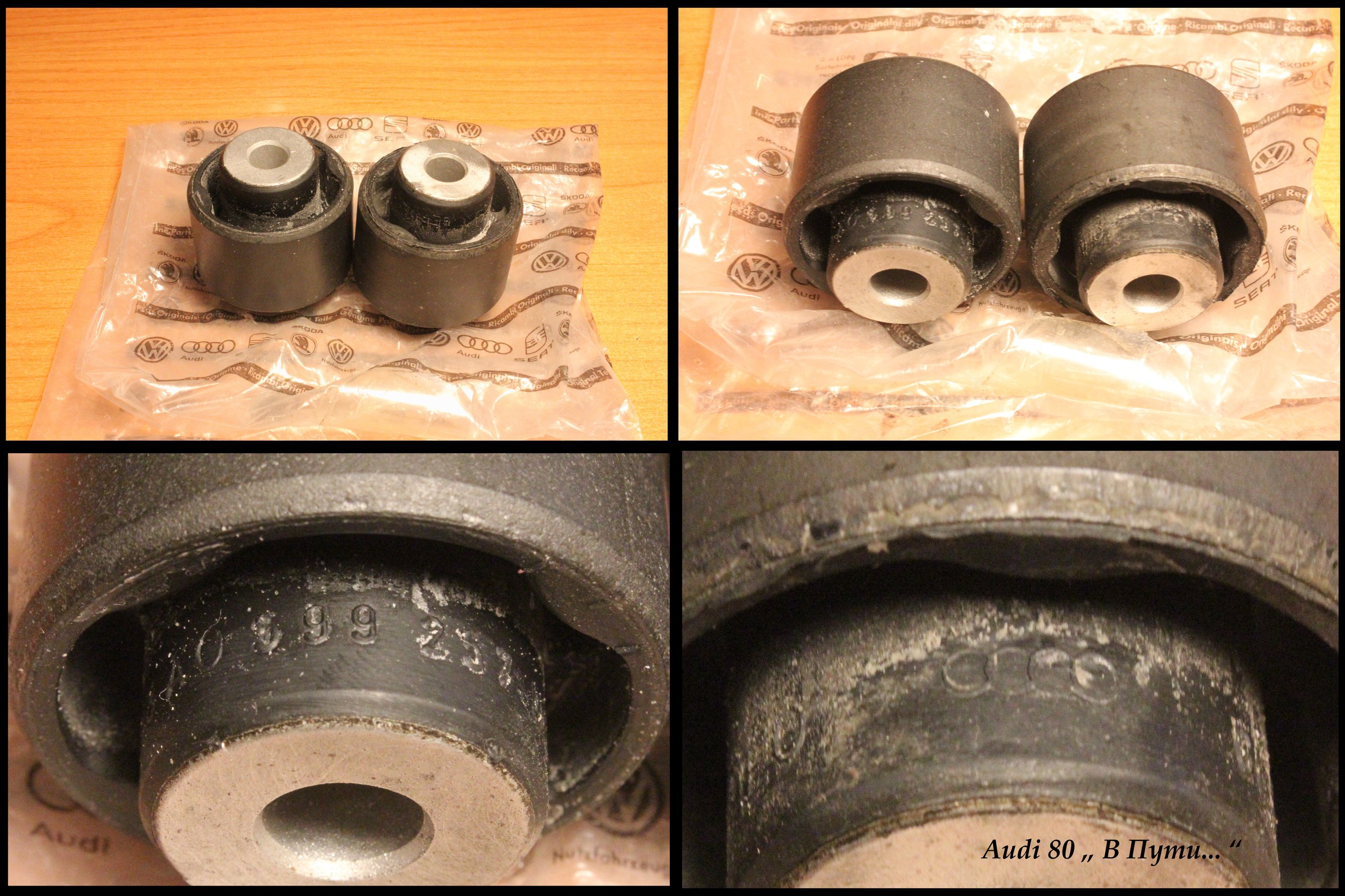 - Защита задних тормозных дисков (лев./прав.) . Audi 80/90/A4/S4 quattro ( VAG 8A0 615 611 C / VAG 8A0 615 612 C ) . Состояние хорошее,видно на фото ,частично отчищены. .Цена : 2шт. - 2500 руб.- Сайлентблоки балки Audi 80/90 (B3) . VAG - 811 511 247 . Оригинал из старых запасов (можно сказать раритет ) , абсолютно новые . Цена : 2шт. - 1500 руб