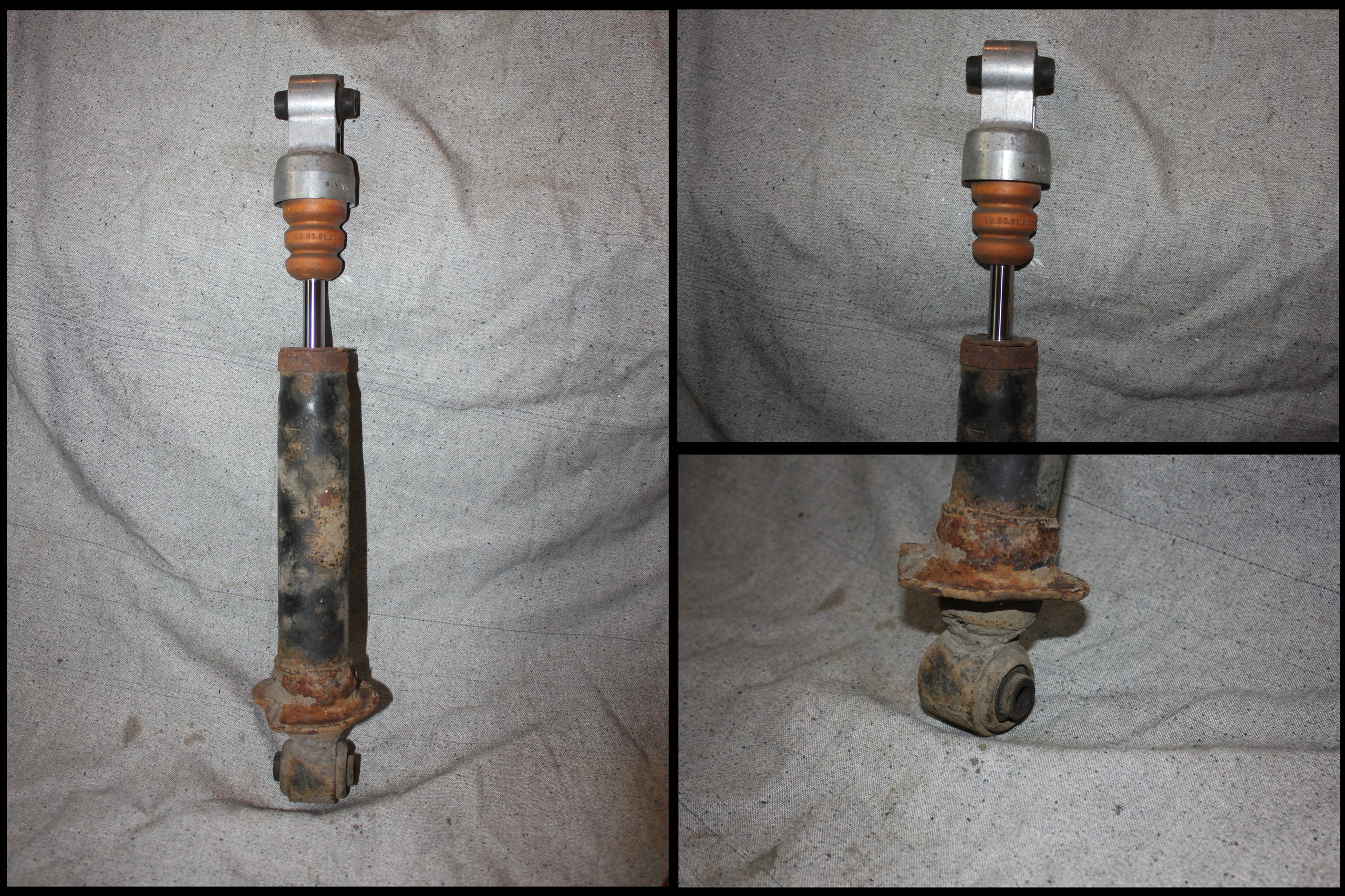 - Задний Амортизатор Audi 80/90/Avant quattro (В4) . Не оригинал,фирму не знаю (газ) . Внешнее состояние видно на фото,сам исправен,без провалов,резинки целые. Цена : 1шт - 1000 руб.