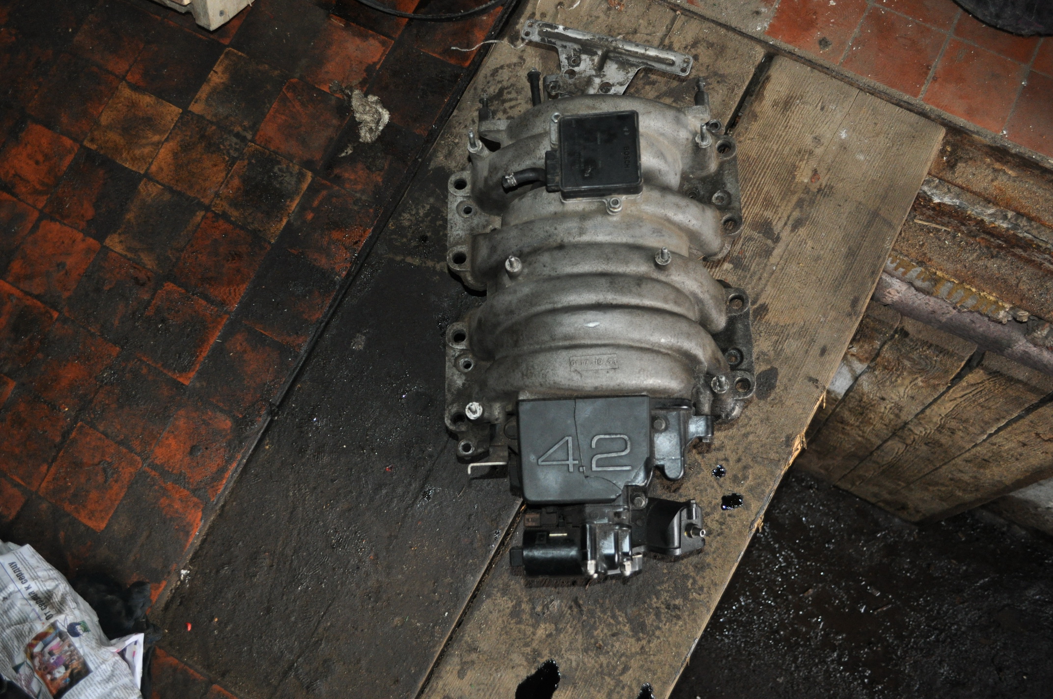 В настоящий момент 4.2 вынут и располовинен. 2.2 Поставлен и прикручен к КПП. Осталось вытащить моторную проводу AEC и проложить проводку от AAN, подключить мозги. Перебрать печку, т.к. радиатор усрался в гавно гребаным маслом. Одно радует , как знал, куплен был AVA честный год отслужил. сейчас лежит новенький Behr и новый моторчик печки. (сразу вопрос, блок климы надо адаптировать под 2.2Т? слышал там меняется кодировка самого блока...)