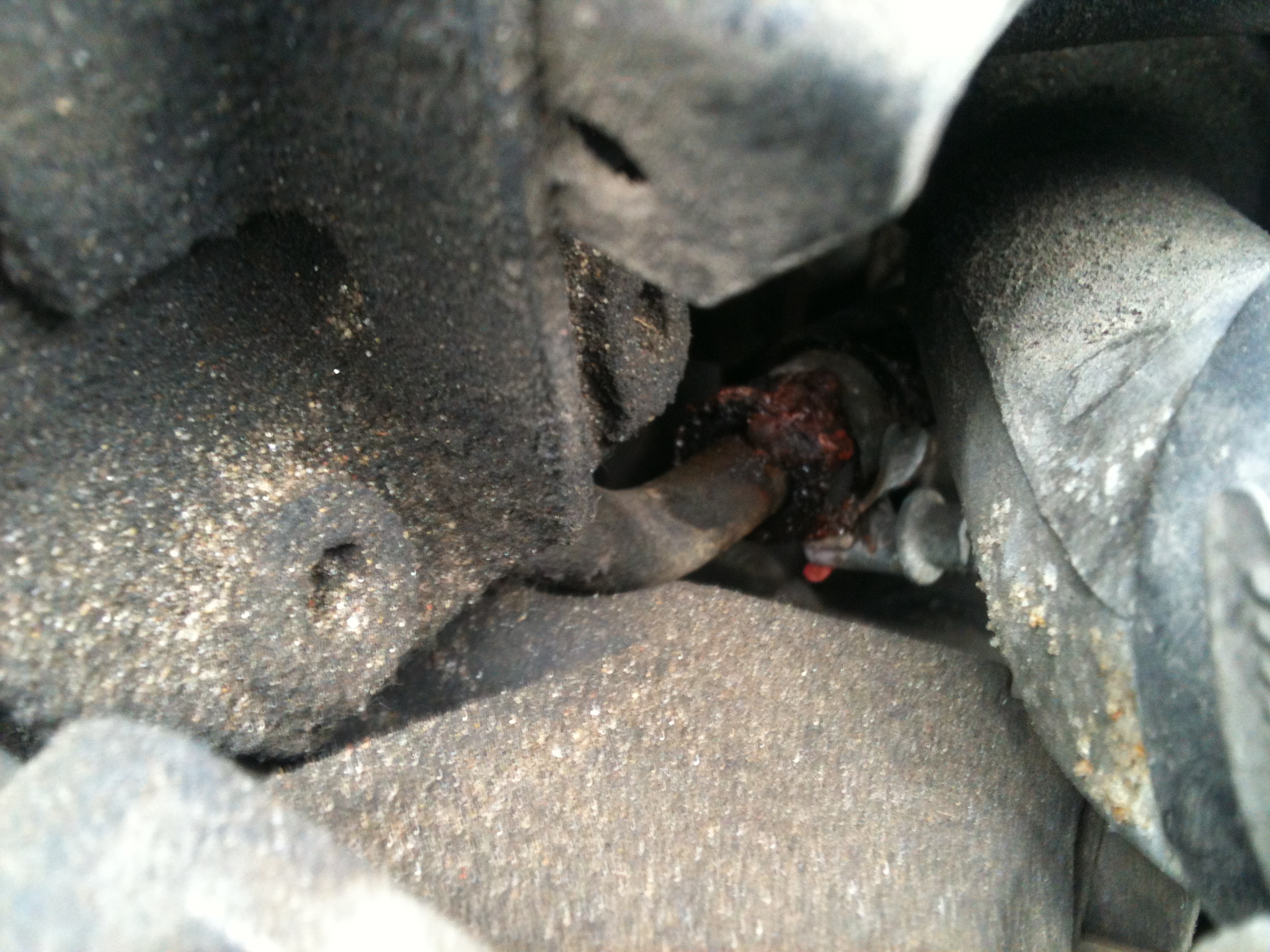 Приехал утром на работу, еще подумал, решил спуститься и еще разок хорошенько посмотреть на подтеки фрица, так если подтеков не видно, луж,капель нет, значит ховно дело! Все просмотрел, так как херово падал свет,ярко, вот разглядел... Отойду от темы: Пока смотрел, чуть порадовался "замена патрубка-хуиня"